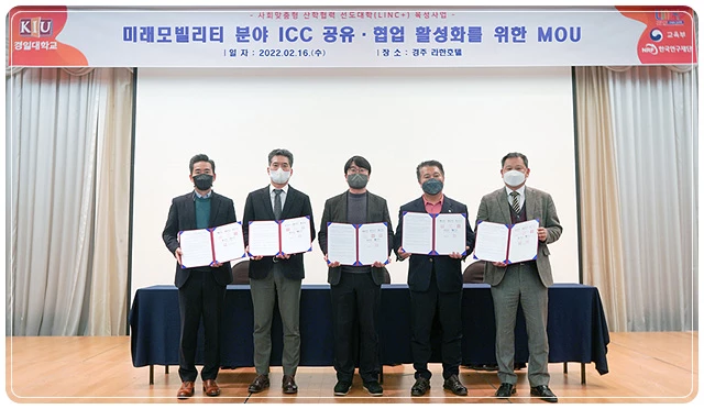 호남대학교 LINC+사업단(단장 양승학)은 2월 16일 경주 라한호텔에서 LINC 3.0 사업의 상호 긴밀한 협조체계 구축을 통한 상호발전을 도모하기 위해 3개 권역, 5개 대학(호남대, 경일대, 계명대, 영남대, 울산대) 간 미래모빌리티 분야 ICC 공유·협업 활성화 업무협약을 맺었다.
