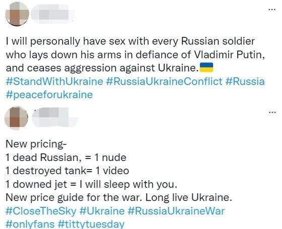 한 성인 전용 플랫폼의 모델인 릴리 서머가 최근 자신의 트위터에 "블라디미르 푸틴에 맞서 무기를 내려놓고 우크라이나에 대한 공격을 중단하는 모든 러시아 군인들과 성관계를 하겠다"라고 선언다.