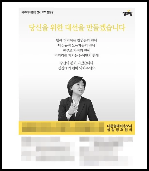 이동영 정의당 수석 대변인은 "심 후보를 지켜주지 못해 미안한 마음과 다당제의 연합정치로 나아가 달라는 소중한 후원금"이라고 전했다.
