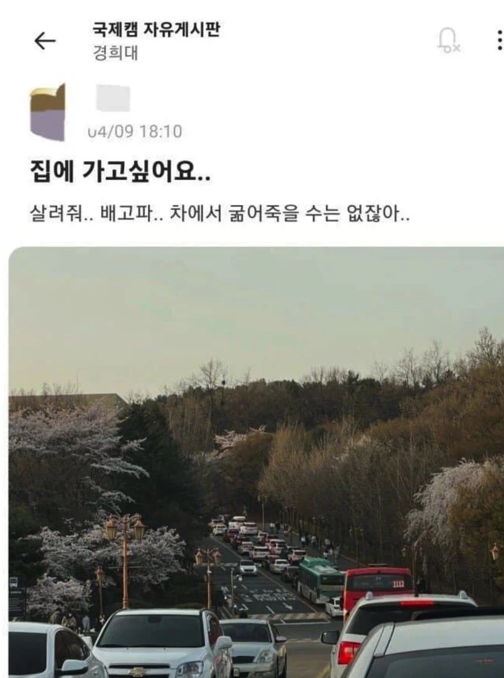 경희대 학생들이 벚꽃놀이를 보러 온 인파 때문에 불편함을 호소했다.