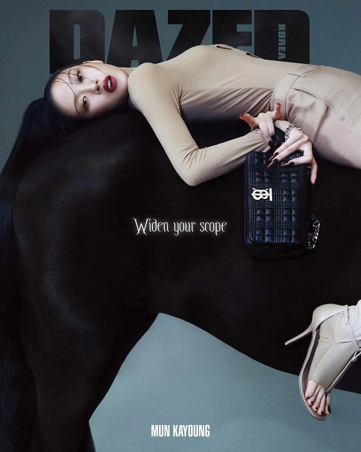 공개된 사진에서 문가영은 허벅지 부위에 구멍이 뚫린 버버리의 블랙 점프슈트를 입고 늘씬한 몸매를 자랑한다. 브래지어 차림으로 검정말 옆에서 요염한 포즈를 취하기도 한다. 문가영의 포니테일 헤어스타일과 검정말이 묘하게 신비로운 분위기를 형성한다.