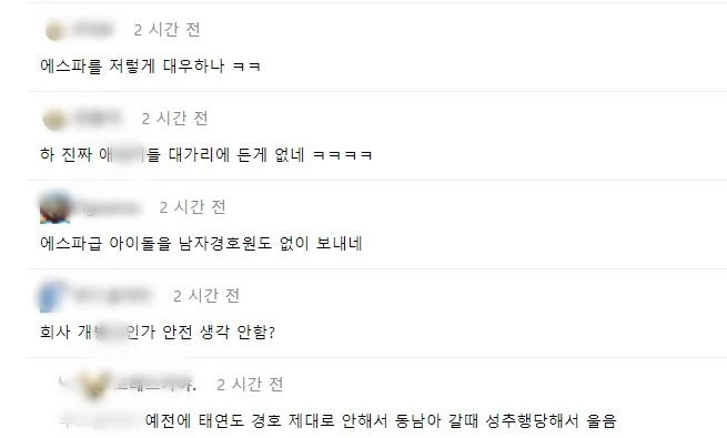 에스파 멤버들이 무대로 이동하는 도중 제대로 된 경호 인력이 없어 학생들과 홈마들이 멤버들과 과한 접촉을 하고 무대에 난입해 사진을 찍고, SNS에 “만지는 것 빼고 다 함”, “XX”라며 성희롱 적인 발언까지 남겼다.