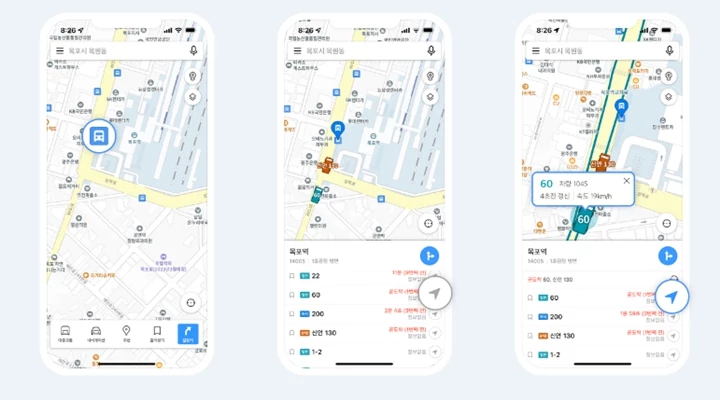 초정밀버스 서비스가 제공되는 이들 지역에서는 카카오맵의 지도 위에 운행 중인 버스의 실시간 움직임을 바로 확인할 수 있다.