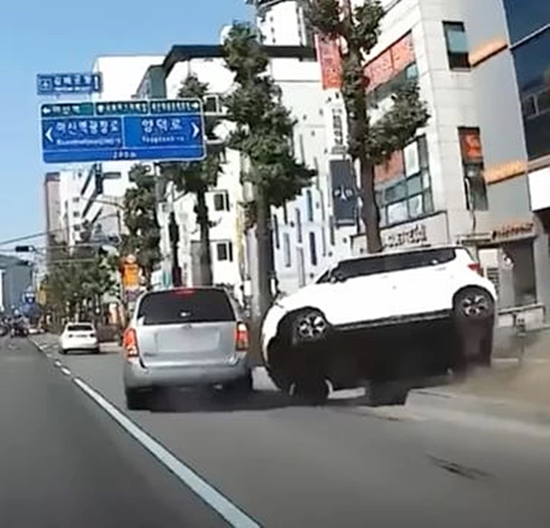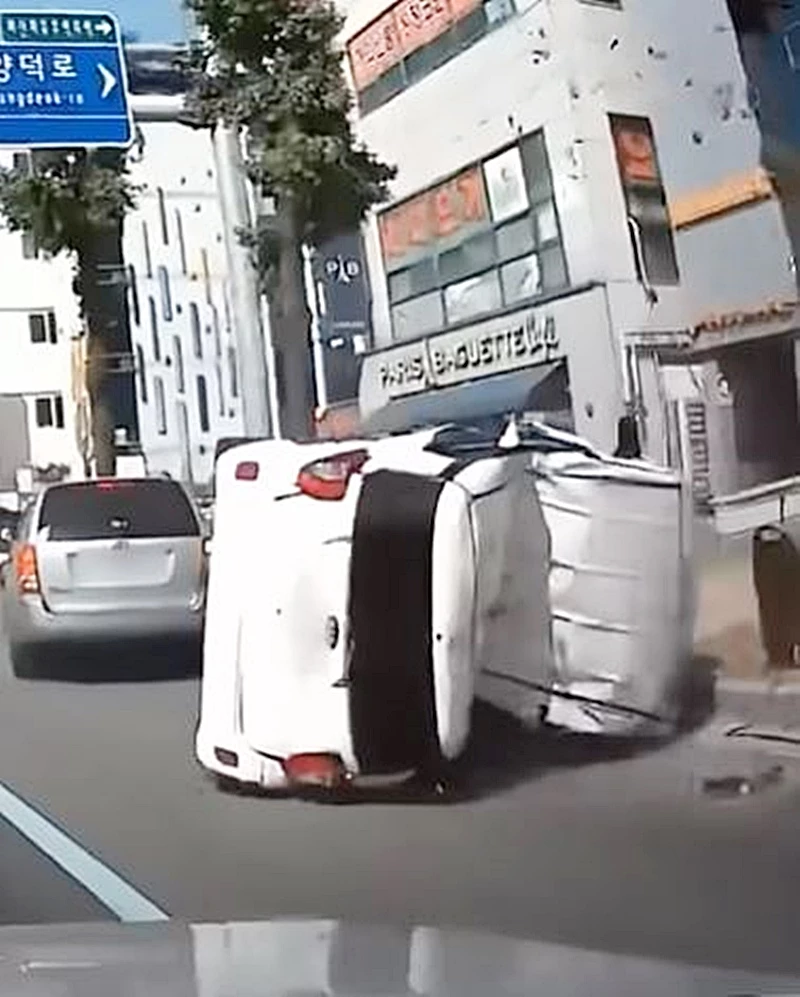 카니발의 후측면부를 들이받은 레이는 충격으로 옆으로 쓰러졌고 이후 차량 지붕 부분이 가로수와 부딪치면서 거의 반으로 접히고 말았다. 레이는 폐차가 필요한 수준으로 크게 파손됐다.