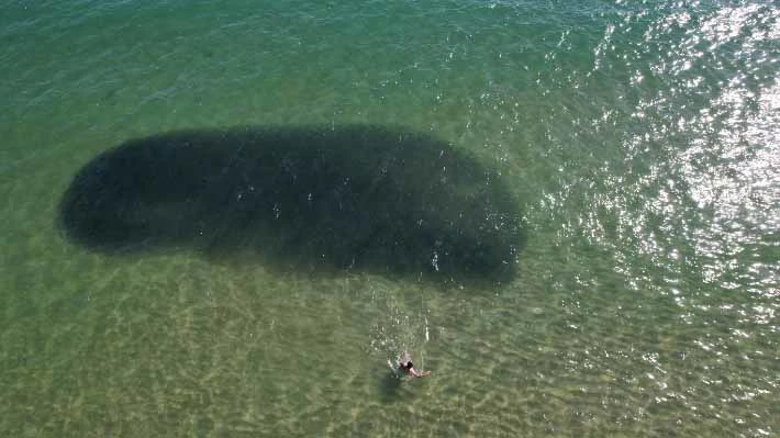 수백m에 달하는 물고기 떼는 오전 한때 띠를 이루어 계속 움직이다 오후 5시쯤 사라졌다.