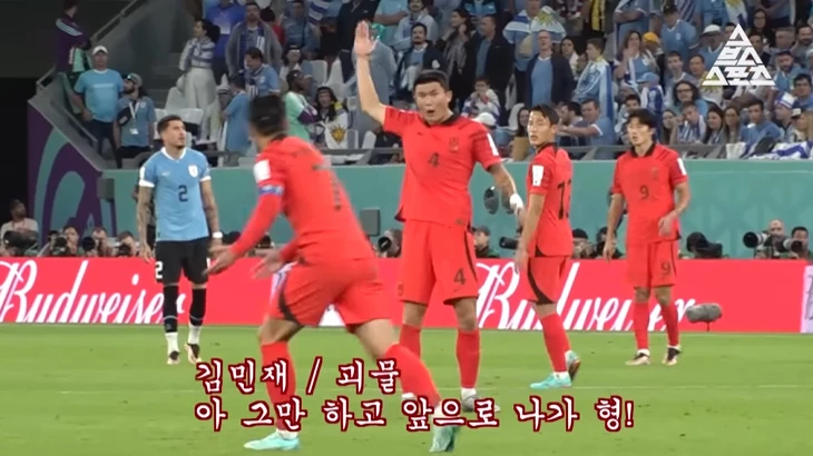 대한민국 축구 국가대표팀 김민재가 경기 도중 손흥민에게 소리치는 모습이 공개됐다.