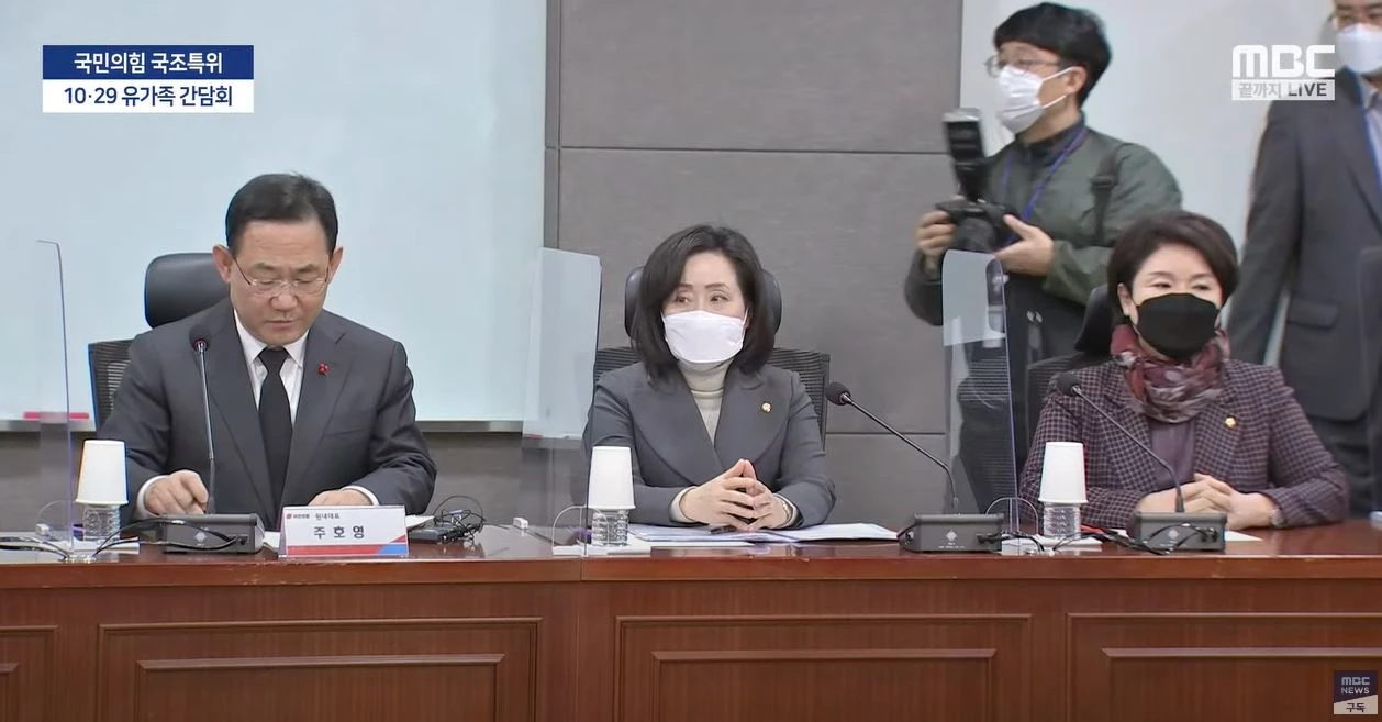 이태원 유가족 일부가 국민의힘 의원들을 만나 분노와 슬픔을 토해냈다.