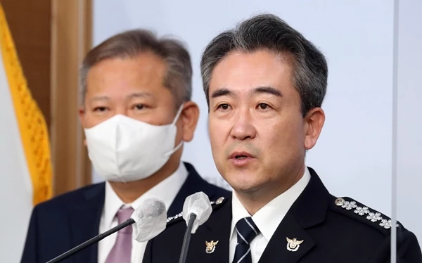 이상민 행정안전부 장관(왼쪽), 윤희근 경찰청장이런 조치는 경찰청 앞에서만 시행된 게 아니다. 청장을 태운 차량이 지나가는 서대문역 사거리, 역시 5시 반쯤 순찰차가 도착하더니, 경찰관이 교통신호제어기를 조작하는 모습이 포착됐다. 경찰은 청장을 위한 단속이 아니라 오래전부터 해온 '꼬리물기 단속'이라는 입장을 밝혔다. 또 퇴근 시간대 경찰청에서 차량이 나오는 것과 보행자들의 횡단보도 이용이 모두 어려운 상황이어서, 교통 근무자를 배치했다고 덧붙였다. 하지만 KBS는 "꼬리물기가 심각한 다른 시간대에는 경찰관들이 나와 있지 않았다"고 전했다. 폭설로 도로가 혼잡했던 21일 아침 출근 시간대에도 꼬리물기 단속은 없었다.