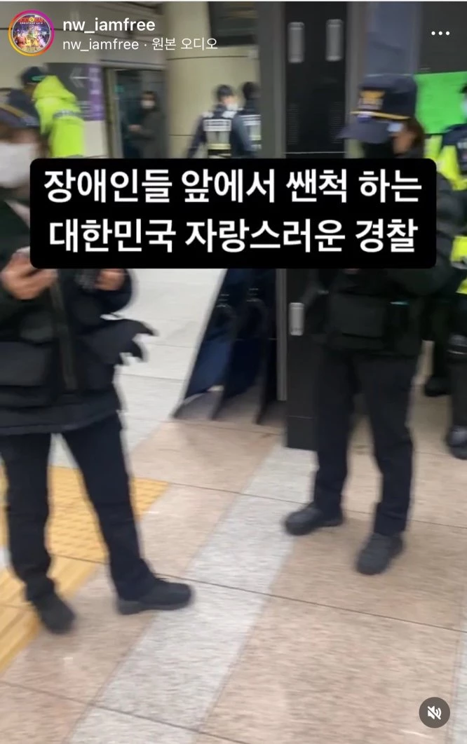 그는 “장애인들 앞에서 센 척하는 대한민국 자랑스러운 경찰”이란 글과 함께 경찰이 전장연 활동가들의 지하철 탑승을 막는 모습을 담은 영상도 게재했다. 전장연 집회에 기꺼이 연대하는 뮤지션이란 점을 SNS로 알린 셈이다.