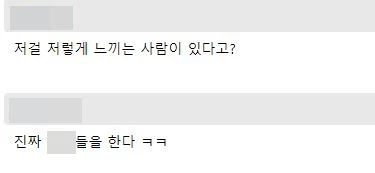 다만 다른 이용자들은 "저걸 저렇게 느끼는 사람이 있다고?", "진짜 지X들을 한다"고 부정적인 목소리를 높였다.