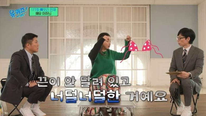 이하늬는 아찔했던 당시 상황을 전하면서 "나름 유교걸(보수적인 여성을 뜻하는 말)이어서 풀릴까 봐 덜덜덜 떨면서 '절대 풀리면 안 돼' 이러고 뒤로 꽉 잡아매고 나갔다. 사진도 찍혀서 되게 굴욕적이었다"고 해 웃음을 자아냈다.