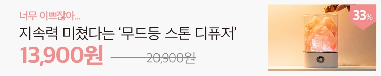 디퓨저와 무드등이 하나로 합쳐진 제품으로 감성 인테리어에 딱이다. 올드한 디자인으로 인테리어를 해치는 일반 디퓨저와 달리 크리스탈 스톤이 가득 들어있는 예쁜 디자인으로 인기가 좋다.