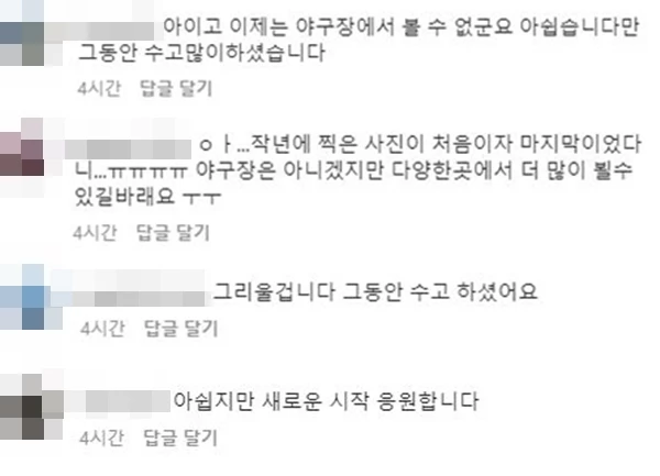 해당 소식이 전해지자 야구 팬들은 아쉬움을 표하면서도 그의 앞날을 응원했다.