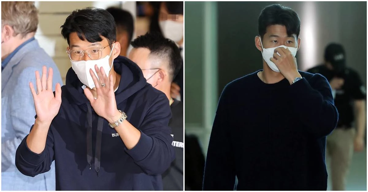 (왼쪽) 손흥민이 코스타리카와 국가대표 친선경기 준비 등을 위해 지난해 9월 19일 오후 인천국제공항을 통해 귀국하고 있다. (오른쪽) 손흥민이 2021년 9월 8일 소속팀으로 돌아가기 위해 인천공항을 통해 출국하고 있다. 손흥민은 카타르 월드컵 아시아지역 최종예선을 위해 입국했다.