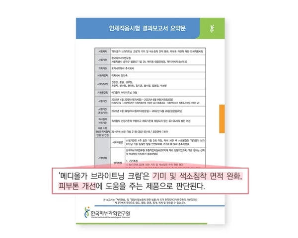 검증된 피부 저자극 테스트와 기미 및 색소침착 완화·피부톤 개선 테스트 검사까지 마쳤기에 민감한 피부도 사용하기 적합하다.