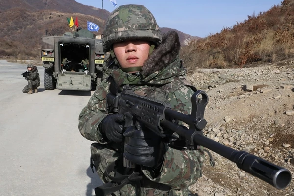 군인이 아닌 군무원들이 경계근무를 서고 있다.