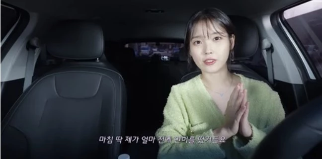 차량 운전석에 앉은 아이유는 "제가 얼마 전에 면허를 땄다. 손에 땀이 막 나고 있다"며 살짝 긴장한 모습으로 누군가를 기다렸다.