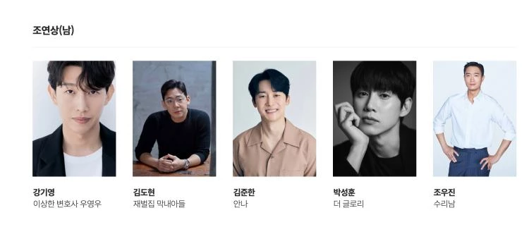 남녀 최우수 연기상 후보에는 손석구, 이병헌, 이성민, 정경호, 최민식, 김지원, 김혜수, 박은빈, 송혜교, 수지가 후보에 올랐다.