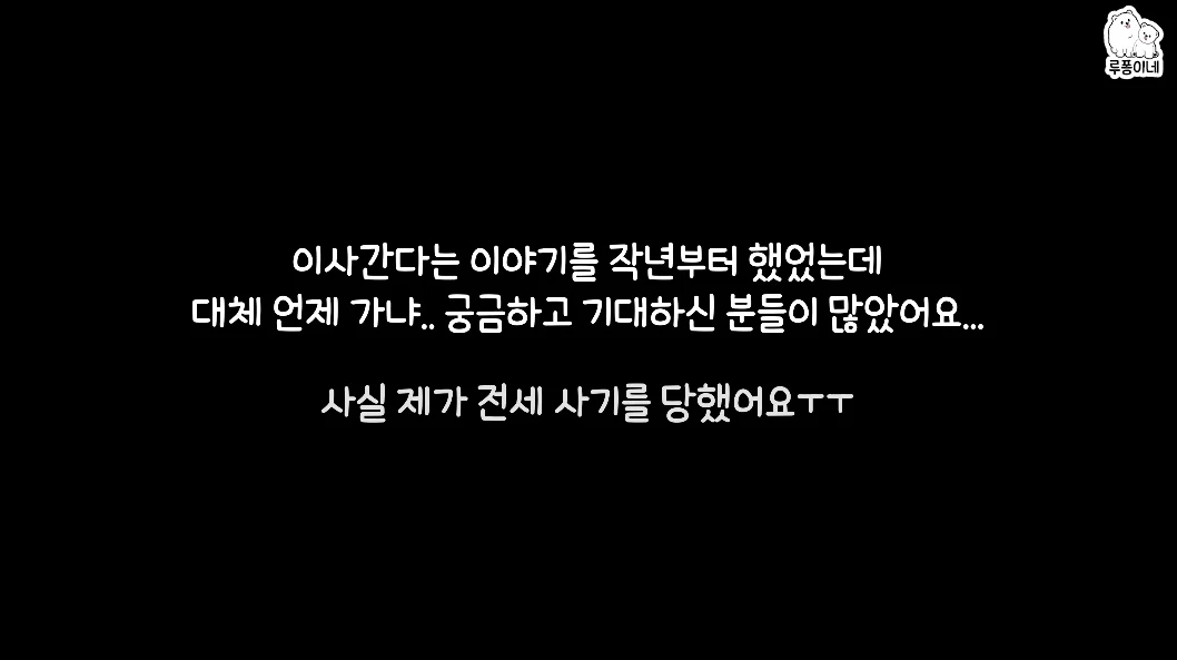 영상에서 루퐁이네는 "이사 간다는 이야기를 작년부터 했었는데 대체 언제 가냐, 궁금해하고 기대하신 분들이 많았다. 사실 제가 전세사기를 당했다"고 고백했다.