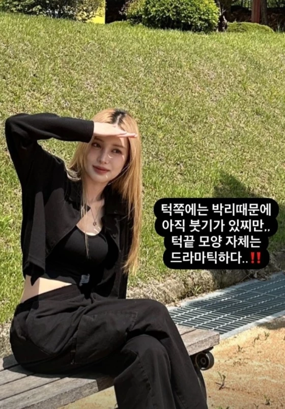 이어 "저 아직 2주도 안 됐는데 부기 대박이죠... 볼 패임도 진짜 좋아졌어요!!!!!!!!!"라며 "내일 부기 과정 유튜브 업로드됩니다"라고 예고했다.
