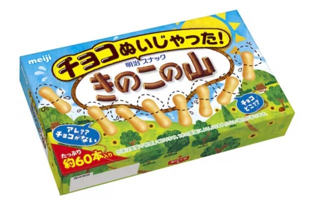 일본 메이지가 파격적인 키노코노야마를 출시했다. 키노코노야마는 송이버섯 모양의 초콜릿 과자다. 몸통(대)은 크래커, 갓은 초콜릿으로 만든다.