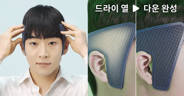 착용 후 드라이기로 바람만 쐬어주면 3분 뒤 옆머리 다운펌이 완성되는 신박한 아이템이다.
