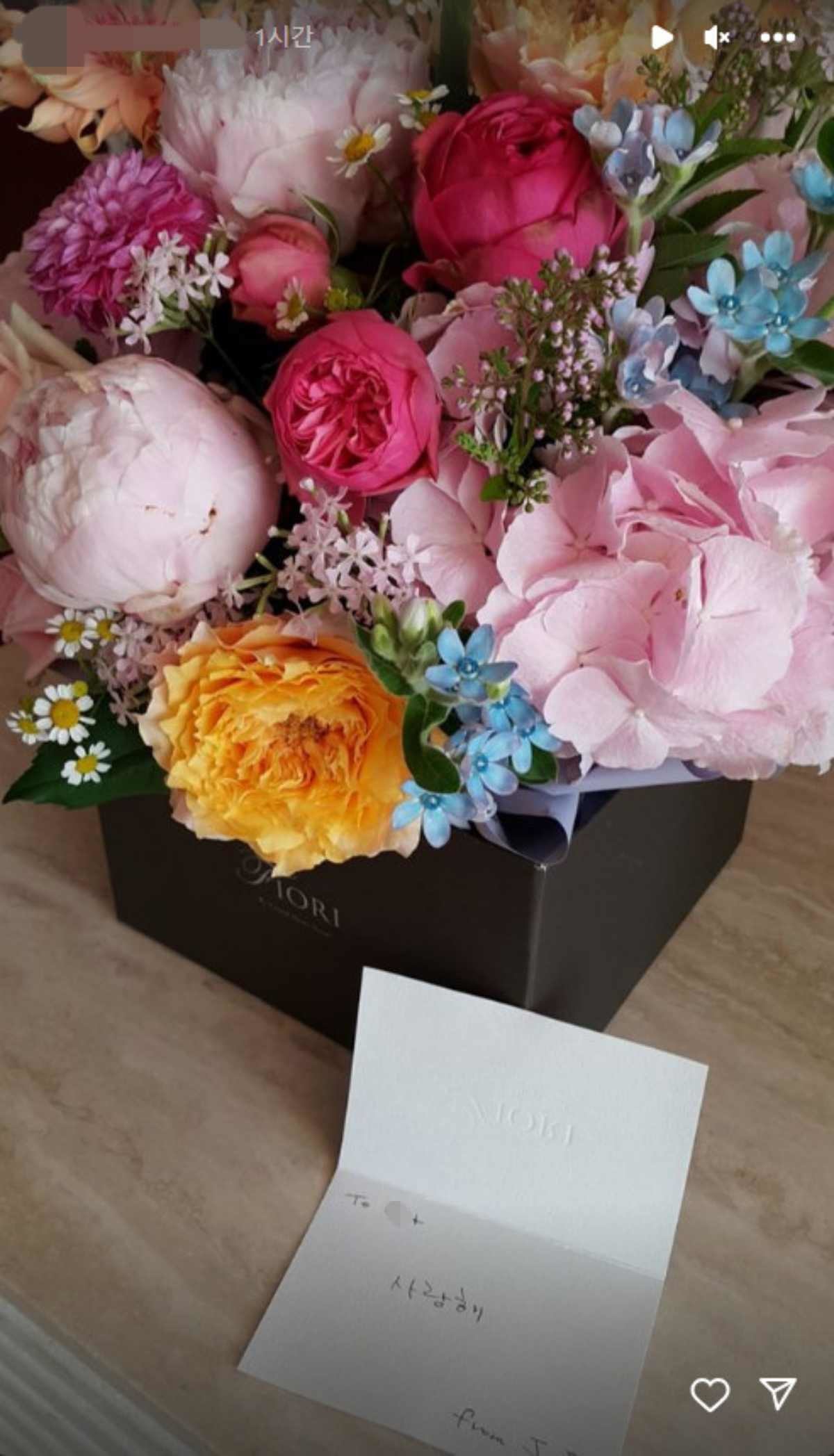 옥순은 17일 오전 꽃선물과 함께 편지를 받은 사실을 공개하며 사진 한 장을 인스타그램 스토리에 올렸다. 올라온 사진에는 누군가가 옥순에게 보낸 편지에 '사랑해'라는 말을 남긴 모습이 담겨 시선을 사로잡았다. 해당 편지에는 보낸 사람 영문 이니셜이 'J'까지만 나와 있어 팬들과 네티즌을 흥분케 했다.