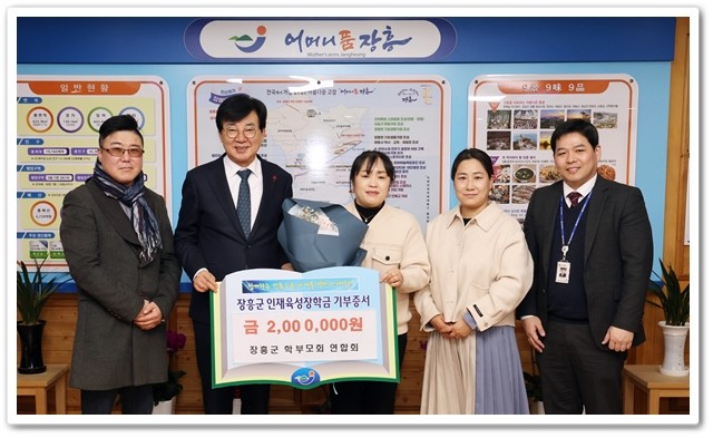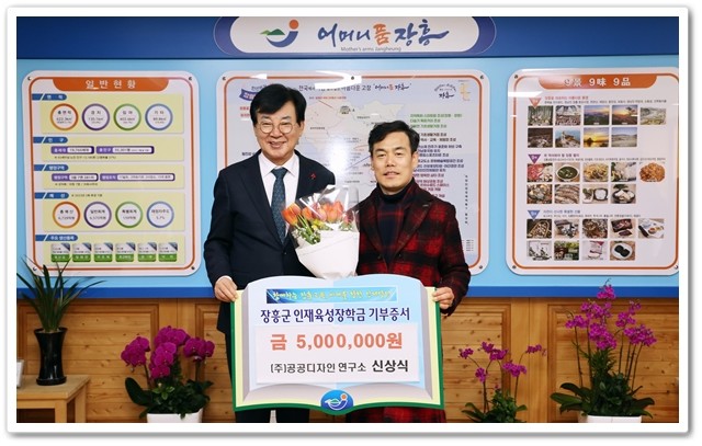 (재)장흥군인재육성장학회는 지난 12일 ㈜공공디자인연구소(대표 신상식)에서 500만원, 장흥군 학부모회 연합회(회장 김은경)에서 200만원의 장학금을 기탁했다고 밝혔다.