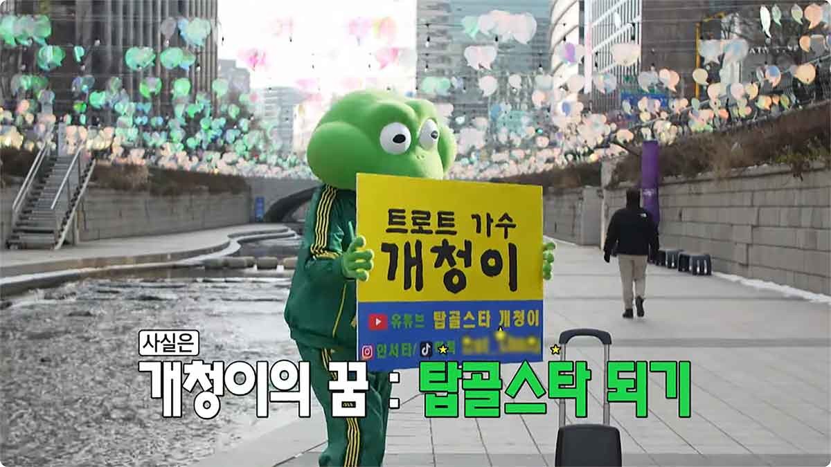 EBS에서 제작한 신개념 다큐멘터리형 콘텐츠 '탑골스타 개청이'는 트로트 가수로 성공하고픈 개청이가 어르신들을 만나 자신만의 노래를 만들게 되는 여정을 담은 프로그램이다.