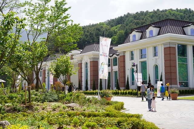 가평베고니아새정원은 완만한 평지에 조성되어 있으면서도 사방이 먼 산으로 둘러싸여 있어 가평베고니아새정원의 경계가 어디까지인지 가늠하기 어려울 정도로 광범위하다.
