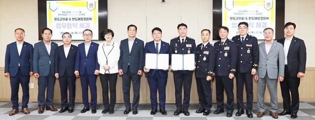 완도군 해역 내 각종 해양 사고 예방, 수산자원 보호, 해양환경 보존 공동 노력을 위해 완도군의회(의장 김양훈)와 완도해양경찰서(서장 이영호)가 손을 맞잡았다.
