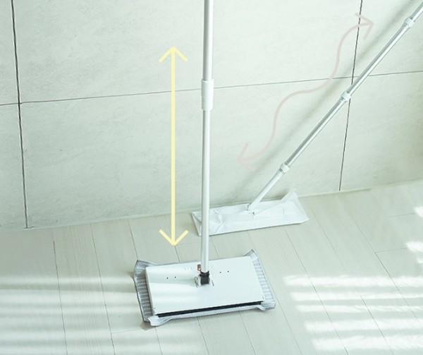 사용법은 간단하다. 함께 제공되는 청소포위에 밀대를 올려놓고 원터치로 한 번 더 탭하여 패드를 필착시키면 끝! 맞춤 길이 조절 고정 핸들은 원하는 용도에 맞춰 64~106cm까지 자유롭게 조절 가능하다.