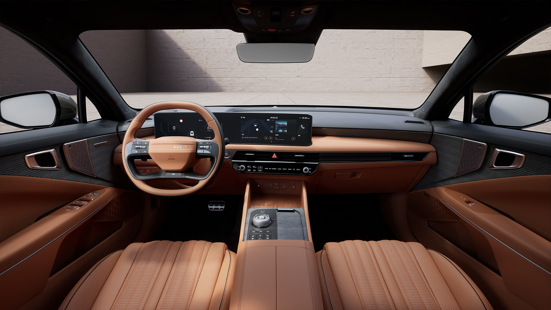 실내 역시 새로운 소재를 사용해 고급감을 높이고 기존 K8에서 보다 더 수평적인 공간감을 살리는 디자인을 채택했다. 파노라믹 커브드 디스플레이 양쪽에 연결한 다이내믹 앰비언트 라이트는 과속 안내, 어린이 보호구역 진입, 음성인식, 웰컴/굿바이 등 다양한 상황에서 운전자와 교감하듯 점등된다. 또한 현대차그룹의 최신 인포테인먼트 시스템 'ccNC(connected car Navigation Cockpit)'가 적용됐으며 OTA를 통한 소프트웨어 업데이트가 지원된다.