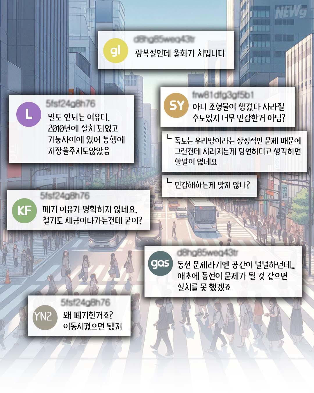 [NEWg] “치울 이유가 없는데”…’독도 모형 철거’ 거센 논란에 결국.. 2024-08-20 17:50 광복절 앞두고 독도 조형물 철거, 서울교통공사 “시민 역사 의식에 부응 못 해 죄송” 더 많은 NEWg의 에피소드를 보고 싶다면 인스타그램에서 확인하세요![☞더 많은 에피소드 보러가기] 광복절독도안국역잠실역지하철광화문역newg뉴그AI웹툰기사 home 전서연 기자 neco608@wikitree.co.kr