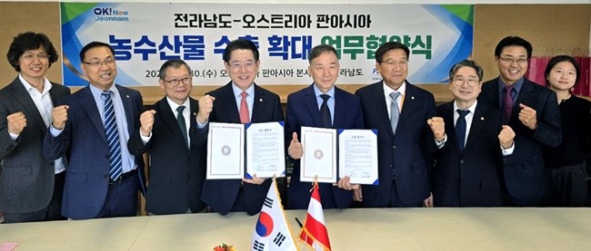 오스트리아를 방문 중인 김영록 지사는 30일(현지시간) 판아시아(PanAsia․회장 정종완) 본사에서 전남 농수산식품 수출 확대 업무협약을 했다.